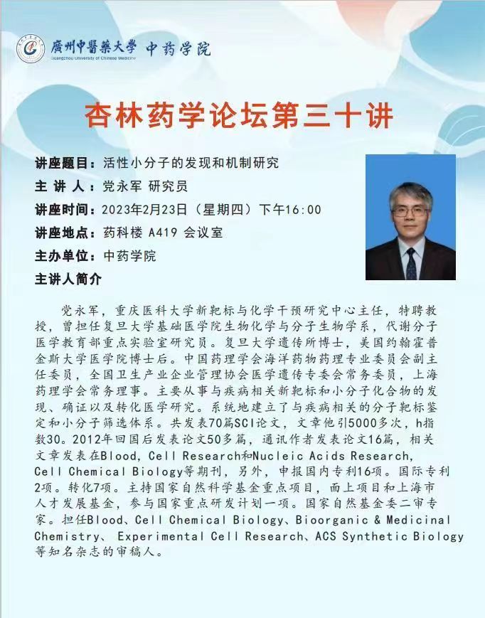杏林药学论坛第三十讲 活性小分子的发现和机制研究