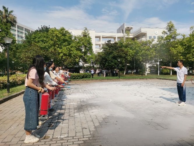 同学们进行灭火演练