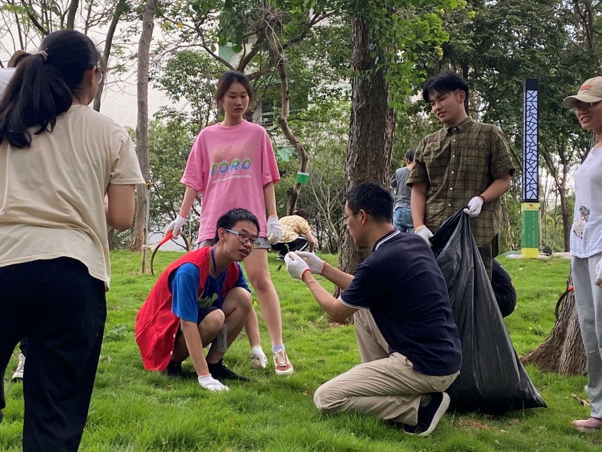 5、开设《中药药用植物种植实践》课程。自5月起,在学院各班级开设《中药药用植物种植实践》,课程内容包括:常见杂草与药园草害防治、土壤取样与环境因子测定、药用植物育苗与移栽等内容。在课程学习中,老师们带领学生到药山上开展药山的植物生长维护、种植等工作,在学习专业知识同时,感受劳动实践的意义,培育“德智体美劳”全面发展人才(图4-9)。