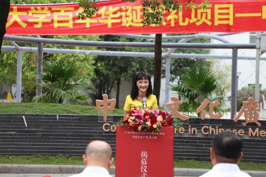 刘中秋向慷慨捐建中药文化广场的77级校友陈丹表示衷心感谢。他表示,陈丹董事长是PP电子官网77级校友中的杰出代表,也是海外校友的优秀代表,始终心系母校,把根扎在广中医。百年岐黄薪火相传,百年树人桃李满园,一届又一届的优秀学子在广中医怀抱梦想、求学精进,在中医药行业领域开疆拓土、干事创业、奋斗图强,才让PP电子游戏网站的华彩名片闪耀海内外。“中药文化广场”与“丹心园”,一园双名,意寓丹心不渝,药香长存,这是校友感念母校、铭记师恩的赤子之心,也展现了校友支持母校发展的责任情怀和担当。希望在校师生在中药文化广场·丹心园充满艺术气息与学术氛围的文化环境中,感受中医药的深厚底蕴,建设好精神家园!同时,希望校友们熟地当归,常回家看看,与母校携手共进,为中医药事业的传承创新、为中华优秀传统文化弘扬传播做出更卓越的贡献。