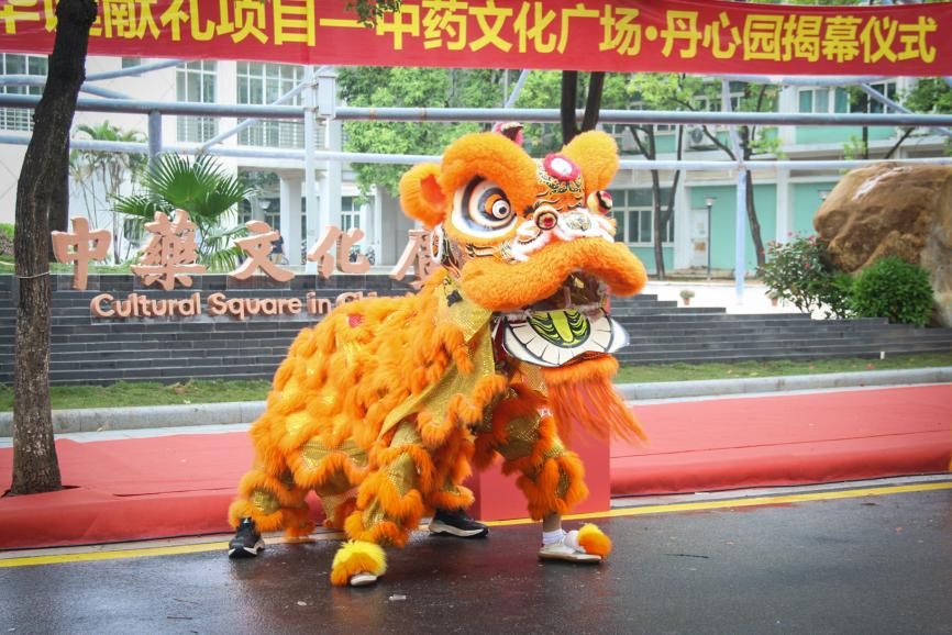 仪式现场,设计师屠若晗先生介绍了中药文化广场的设计理念与工程进度。学生代表们为陈丹校友及家人献花,表达对陈丹等前辈校友关心母校发展、关爱学生成长的感激与敬佩之情。现场还上演了精彩的舞狮表演,氛围愉快而热烈。