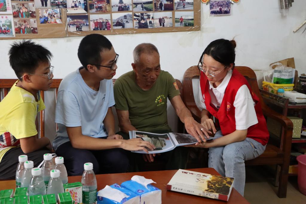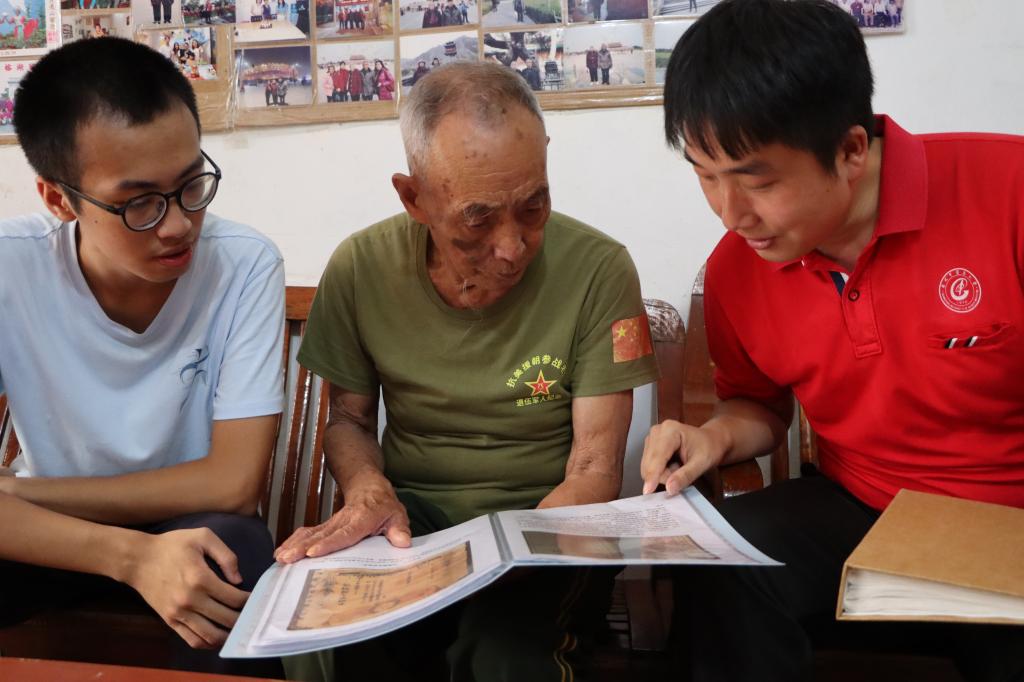 诊断结束后,师生们围坐在老人旁边聆听烽火故事。谈起那些峥嵘岁月,老人满怀自豪和骄傲,“有一次阵地战与美军交锋,战友们在正面迎敌,我就绕到了敌人侧面,一梭子子弹全打光了,消灭了十多个敌人”。最后,他告诫年轻人,安稳幸福的生活来之不易,要懂得惜福、上进,为国家做些贡献。