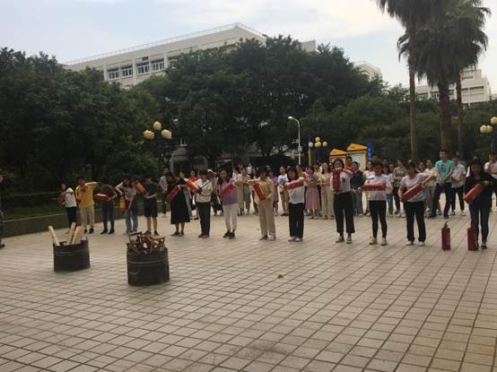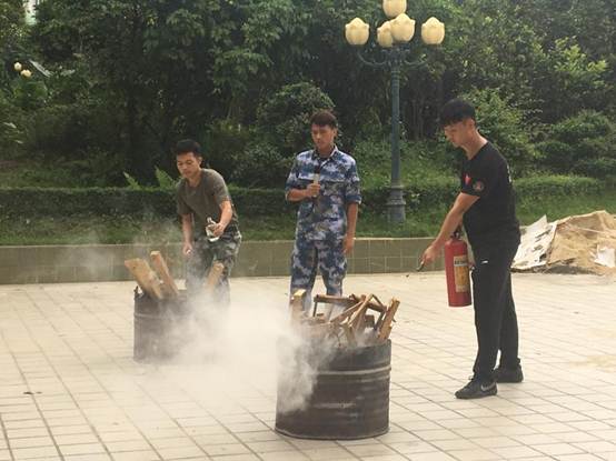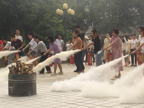 第三部分是使用灭火器的现场讲解和演练。体育健康学院的消防志愿服务站的同学们在药科楼A一楼前空地给师生做了标准示范,让现场的老师和同学们掌握正确的消防技能,熟练运用消防器材。随后,在场的每一位师生分批分组,人人动手练习使用干粉灭火器,进行灭火的实操训练。