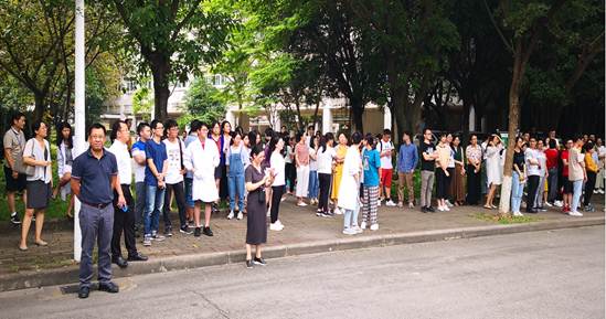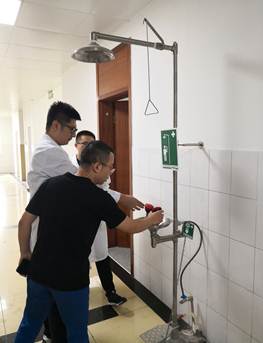 (一)疏散演练:在学校保卫处消防科组织下,摸拟火警响铃,引导在实验室学习工作的100余名师生迅速有序地从药科楼各层疏散到安全地带。实验室疏散演习,不仅增强了师生们消防安全意识和自防自救能力,同时对影响消防警铃等安全设施功能发挥的因素进行了排查并提出完善建议。