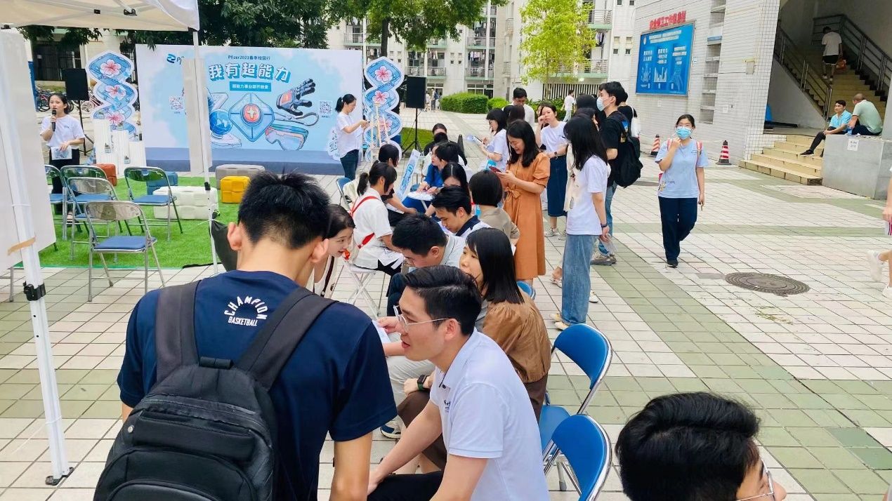 活动在大学城校区生活区举行,以“我有超能力”为主题,辉瑞罕见病、疫苗、肿瘤、炎症与免疫、广阔市场、医院急症六大事业部轮番登场宣讲,采用脱口秀的形式,详细介绍各自部门的职业愿景、工作趣事、工作职责、招聘岗位等情况,解析属于自己的“超能力”。宣讲人员中不少都是PP电子官网校友,丰富有趣的内容引发了很多学生围观,现场人流涌动,座无虚席,气氛热烈。宣讲结束后,企业为学生提供了递交简历并现场面试的机会,不少学生抓住机会投递简历,现场参加了面试,并向在场的“大师兄”“大师姐”请教求职问题,咨询生涯疑惑。企业也为参加活动的学生准备了精美多肉植物礼品,赢得了很多学生的青睐。