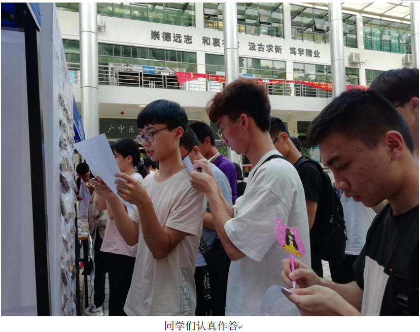 微风徐徐,药香袅袅。在PP电子游戏网站团委和中药学团总支的组织下,工作人员早早按照计划做好了活动的前期准备工作,等待同学们参与活动。一排排中药饮片陈列在桌上,精美的小礼物,充满挑战性的答题制度,吸引了各个学院的同学们。在中药饮片学习区,工作人员耐心地讲解相关中药的性味归经和功效主治,并且教会同学们如何辨识两味相似的中药,同学们听得专心致志。跃跃欲试的同学们拿着答题卡来到中药墙前,仔细观察墙上的饮片,努力辨识,在这个过程中加深了对中药饮片的印象。答题结束后由工作人员整理答题卡并核对分数,按照分数梯度分别给同学们发放精美的小礼品。活动过程中,同学们收获了满满的中药知识,不仅加深了对中药的认识,而且对中医药文化也有了更加深入的体验。