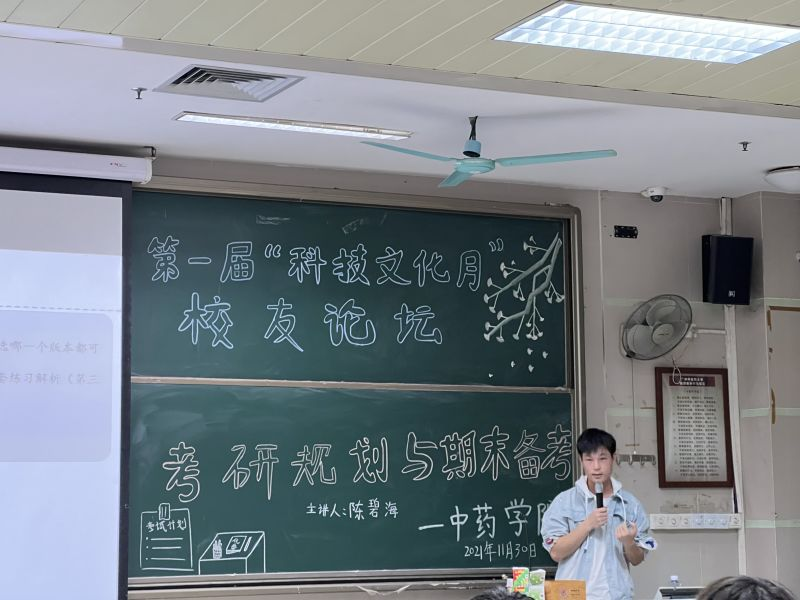 关于考研规划,陈碧海校友分享了考研动机、院校选择、考研复习等宝贵经验,并给出了有益的建议。他提到,尽管同学们还是大一新生,但应该尽早明确自己的目标,做好自身职业发展规划。