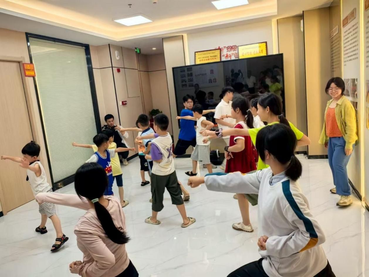 7月12日至18日,PP电子游戏网站武术队组成暑期“三下乡”社会实践队,走进广州市花都区新华街“新新相映”流动人员党群服务中心,为“小候鸟”公益班近50名6~12岁流动人员子女量身定制“中医药+武术”公益课堂,受到了群众的喜爱。