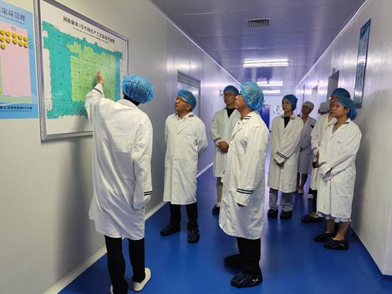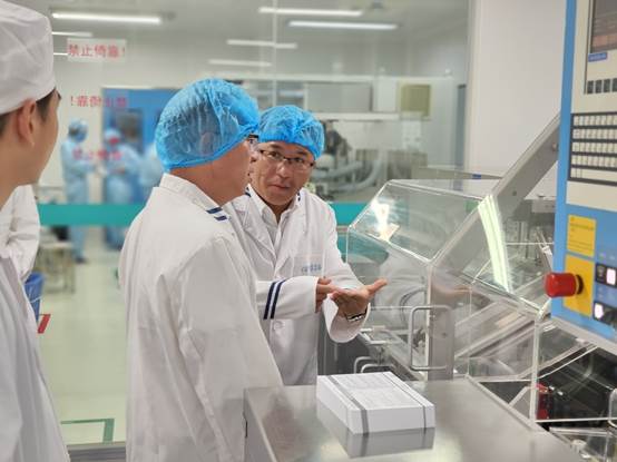 陈书记一行在公司管理人员的陪同下,实地参观考察广州海瑞药业有限公司产品生产线,详细了解企业药物生产流程。漫步在花园般的厂区,优美整洁的环境,让大家赞叹不已。进入生产车间,直观感受药品自动化的生产流程和精益生产管理,了解海瑞对产品质量的精准把握和至臻追求。走进实验室,各类先进精密仪器琳琅满目,工作人员办公环境干净舒适。