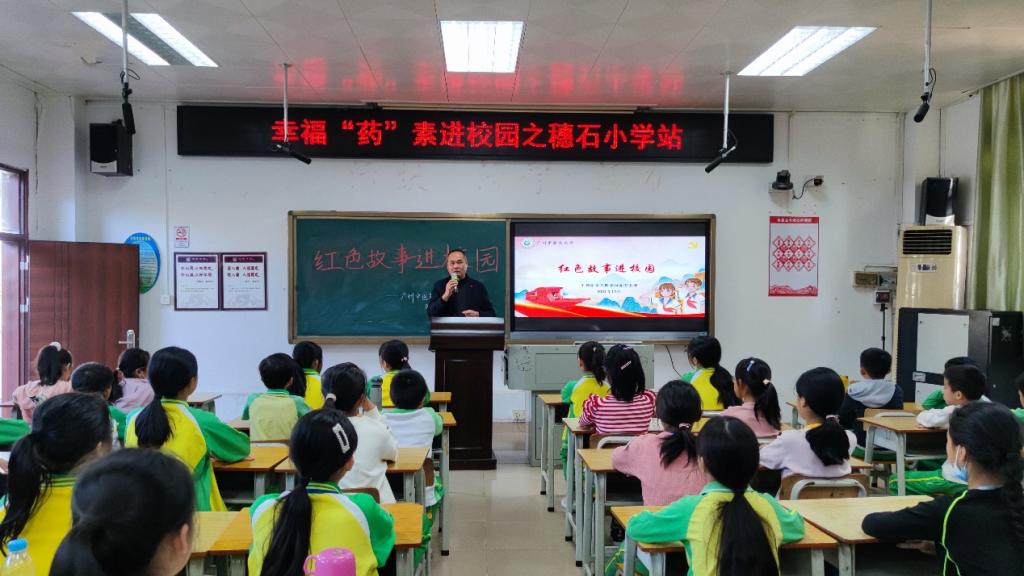 为扎实推进党史学习教育走深走实,入心入脑, 12月3日下午,PP电子游戏网站党委副书记陈其煌带领中药学专业联合培养党支部全体同志走进穗石小学,开展主题为“讲好红色故事,传承红色基因”的“红色故事进校园”党日活动,穗石小学80名五年级学生参加活动,穗石小学校长郭伟文,教导处主任梁杰基等老师出席。