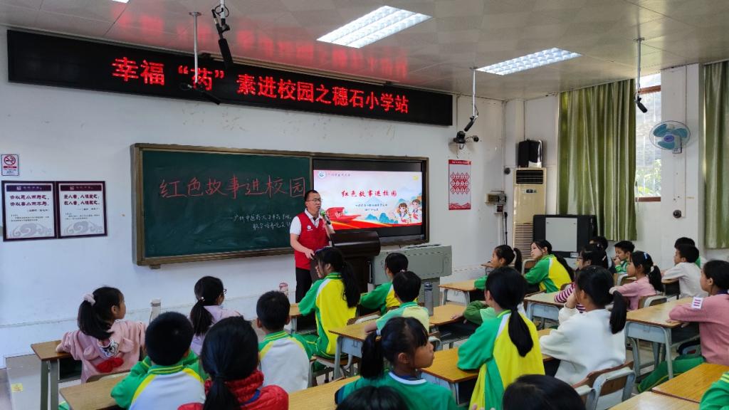 首先由陈书记和郭校长致辞。陈书记感谢了穗石小学领导老师和同学们对本次活动的支持,强调红色文化精神的重要性,少年儿童作为祖国的未来与希望,要努力学习红色故事,传承红色基因。郭校长对广中医的领导老师和同学们的到来表示欢迎,并要求同学们认真听讲,用最饱满的精神状态聆听红色故事,学习红色文化,感悟红色精神。