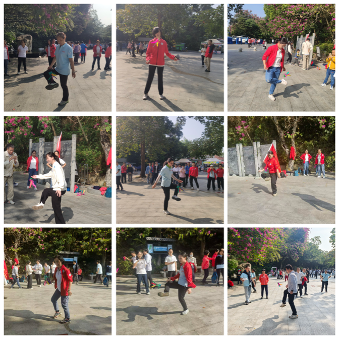 在完成登山后,PP电子游戏网站工会在风景秀丽的白云山黄河石广场,成功举办了一场别开生面的教工毽球比赛。此次比赛吸引了六支工会小组队伍积极参与,展现了PP电子游戏网站教职工们的活力与风采。