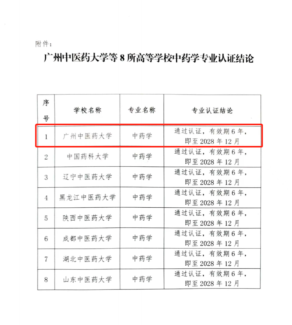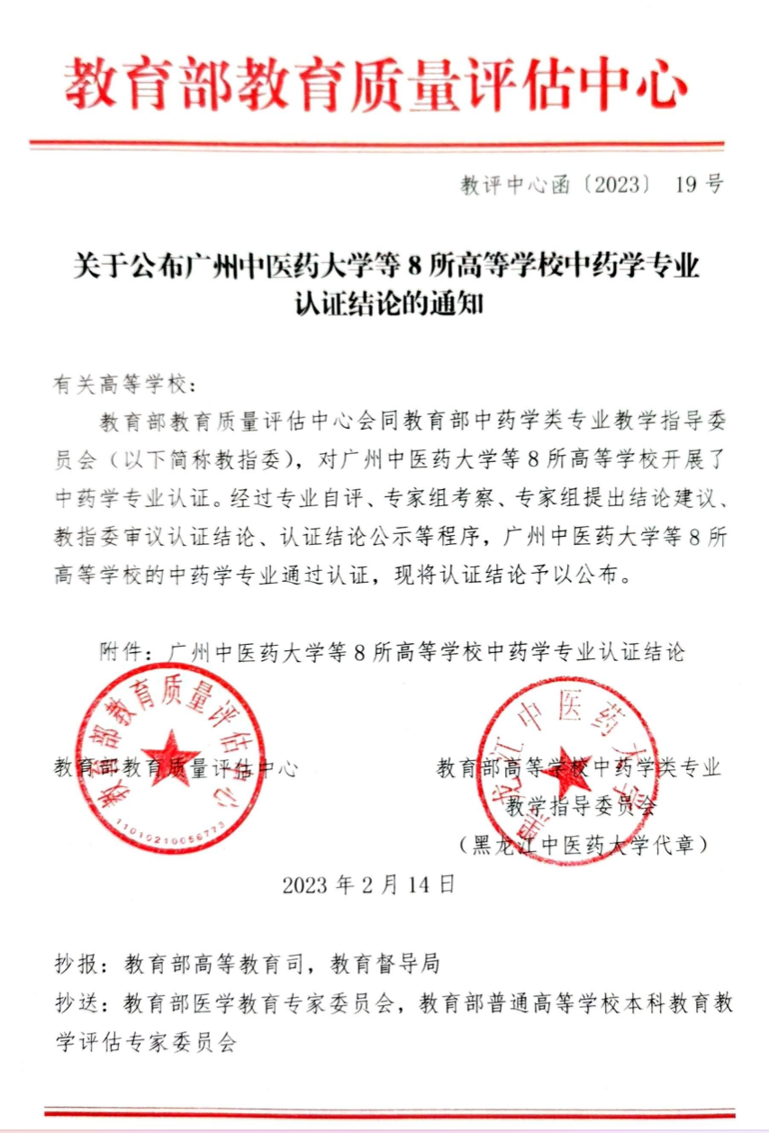 2022年10月,教育部教育质量评估中心会同教育部中药学类专业教学指导委员会(以下简称教指委),对我院开展了中药学专业认证。经过专业自评、专家组考察、专家组提出结论建议、教指委审议认证结论、认证结论公示等程序,中药学专业通过认证。