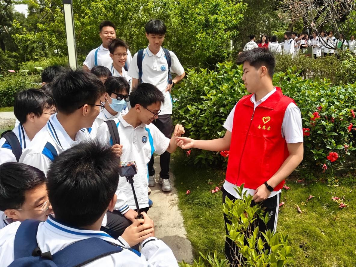 沉浸式体验,感悟中医药底蕴。活动当天,在学院师生志愿者的引导下,均安中学师生分组参观了广东中医药博物馆、PP电子游戏网站药用植物室外教学基地等。通过近距离观察中医药文物、亲近岭南特色药用植物,中学生们直观感受到中医药学的学科魅力与大学校园之美。