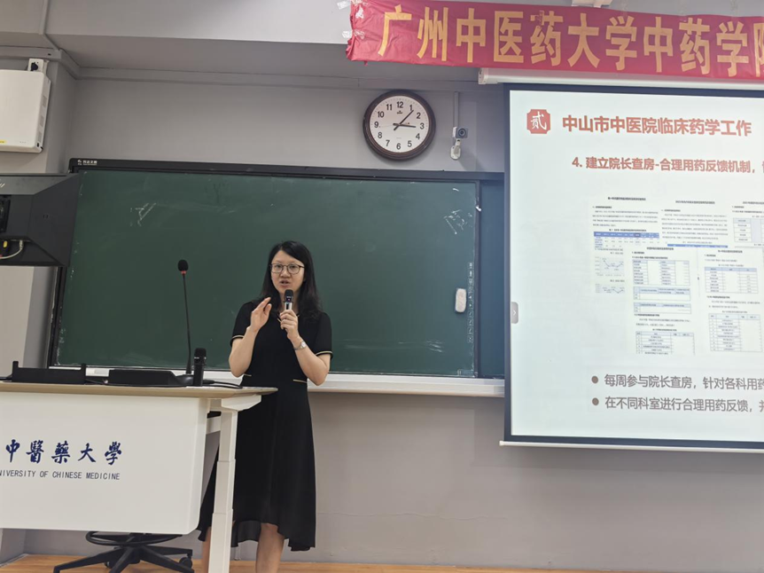 在医药行业快速发展的当下,为帮助PP电子游戏网站学子深入了解临床药学领域,精准锚定职业发展方向,5月29日下午,一场主题为"临床药学工作实践与职业发展"的专题讲座在大学城校区教学楼B201教室热烈开讲。中山市中医院药学部副主任、临床药学科负责人,学院96级校友吴惠妃主任药师受邀主讲,学院党委副书记王建刚、临床药学专业辅导员顾航,2022级、2023级临床药学专业学生等一同参与学习。