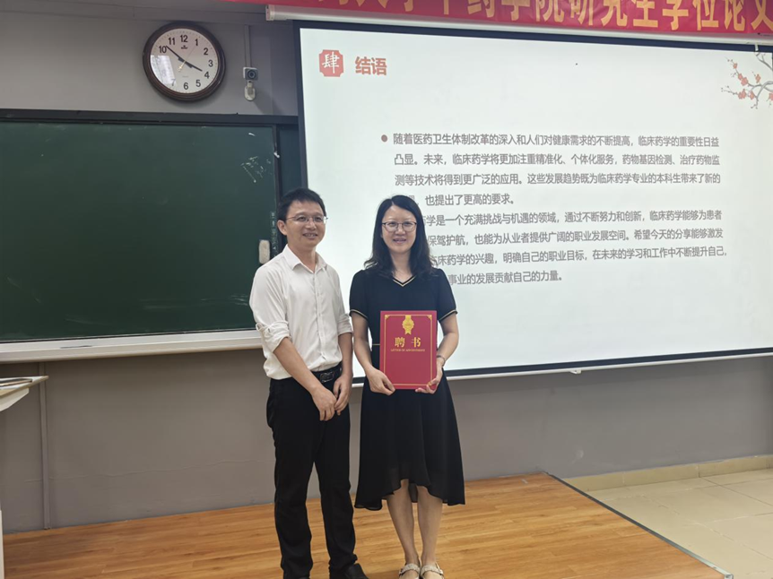 活动尾声,学院党委副书记王建刚向吴惠妃颁发学业指导老师聘书,并总结强调,希望同学们能够将讲座中汲取的知识与经验融入日常学习生活,不断提升专业素养与综合能力,朝着成为优秀临床药学人才的目标奋进。
