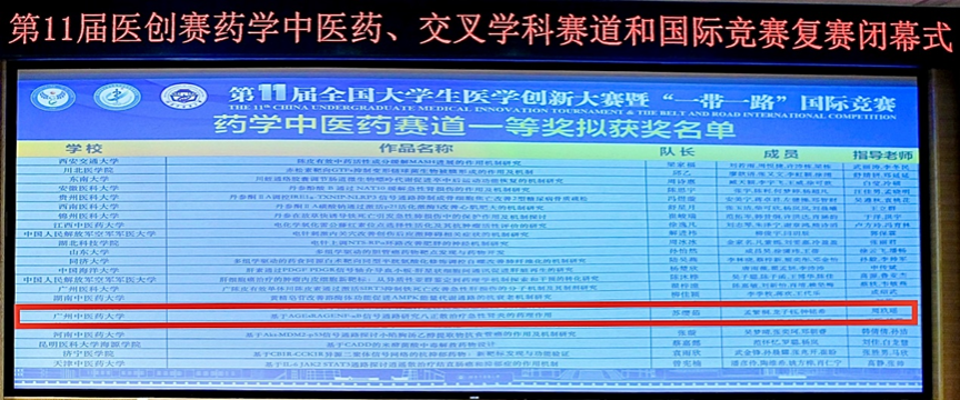 7月7日,第十一届全国大学生医学创新大赛药学中医药、交叉学科赛道暨“一带一路”国际竞赛复赛圆满收官。PP电子游戏网站周玖瑶老师指导的《基于AGEs/RAGE/NF-kB信号通路研究八正散治疗急性肾炎的药理作用》项目团队在激烈竞争中脱颖而出,荣获药学中医药赛道复赛一等奖,成功晋级2025年8月在山东大学举办的全国总决赛,即将在国赛舞台上与国内顶尖高校学子同台竞技。