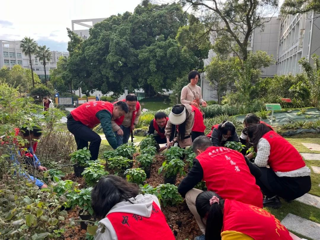 学院师生共同种植一串红