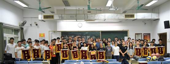 在热烈掌声中,主持人宣布闭幕仪式正式开始。首先,主持人对本次“中药杯”的所有运动员、裁判员以及工作人员表示感谢。紧接着,主持人依次宣布了本次“中药杯”三球赛的结果及获奖队伍:男篮第一、二、三名分别是研究生队、17药学队、16中药队;女篮前三名分别是药学队、中药队、制药队;男排前三名分别是药学专业队、中药学专业队、制药工程专业队;女排前三名分别是药学专业队、中药专业队、制药工程专业队;男足前四名分别是教师队、研究生队、药剂联队、18药学队;女足前三名分别是中药学队、药学队、中药制药队。随后,陈佳宜老师和纪彩霞女士为获奖队伍颁奖,并对他们表示祝贺。最后,嘉宾、运动员代表和全体工作人员一起拍摄大合照。