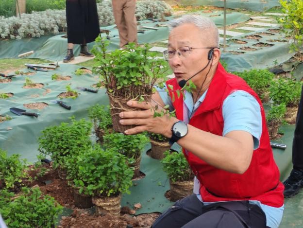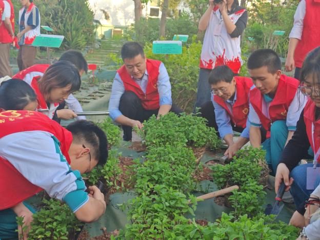 在药王山种植区,黄海波、林小桦两位老师现场讲解药用植物的生长习性、种植技巧及其文化内涵,带领师生们亲手栽种株株本草。从挖坑、栽苗到培土、浇水,大家分工协作,田间地头洋溢着劳动的热情与青春活力。