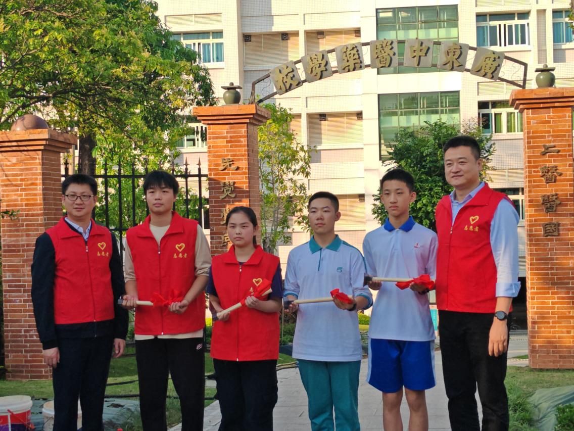 随后,白云龙院长与广州六中肖刚副校长,共同为学生代表授予药锄,象征着青年一代接过中医药传承的接力棒,开启本草文化的守护之旅,也接过“共植本草根,同铸青春魂”的使命与担当。