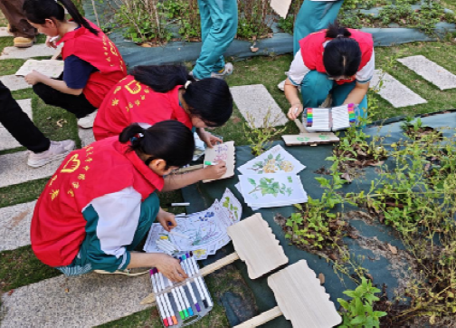 种植结束后,师生们分组开展插牌写绘创作,将本草名称、药用功效、寄语感悟凝于笔端、融于设计,既是对劳动成果的珍藏,亦是对中医药文化的鲜活诠释。一幅幅巧思盎然的作品,成为药王山间独具韵味的中医药“文化名片”。