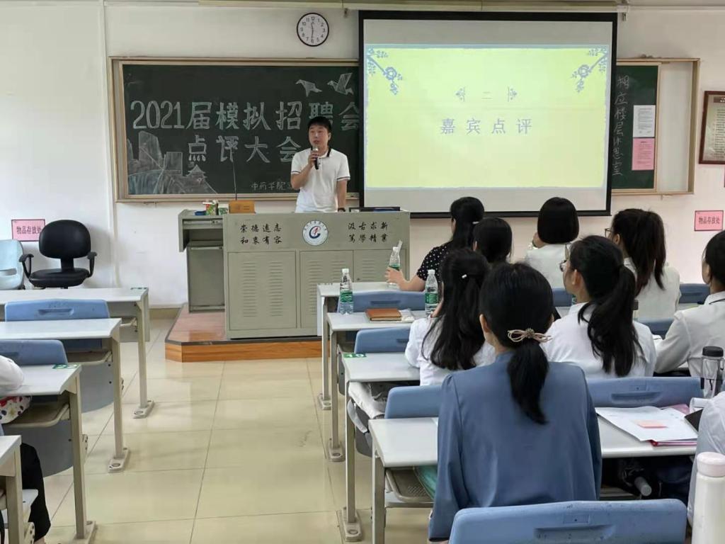 2021年5月15日11:00,PP电子游戏网站模拟招聘会点评大会于教学楼A301如期举行。本次点评大会旨在对早上模拟招聘会的现场情况进行及时反馈,邀请了辉瑞生物制药的李静慧女士和广州白云山中一、奇星药业的利艳芳女士给现场的大三学生分享她们的看法与求职经验。PP电子游戏网站学工办辅导员陈琳莹、骆贞辉、秦娟、田艺峰出席。