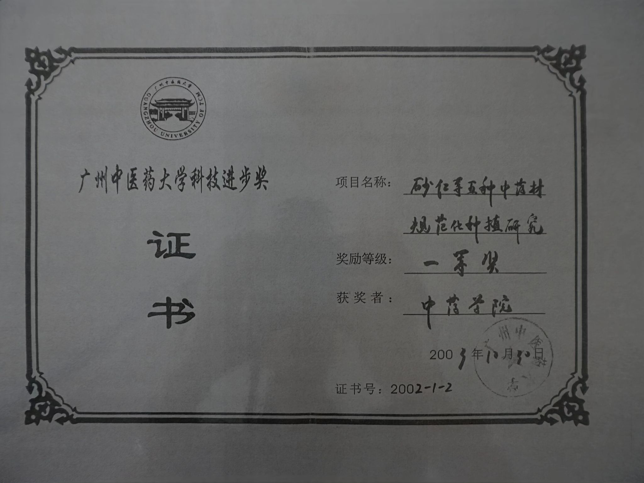 获奖时间:2003年10月